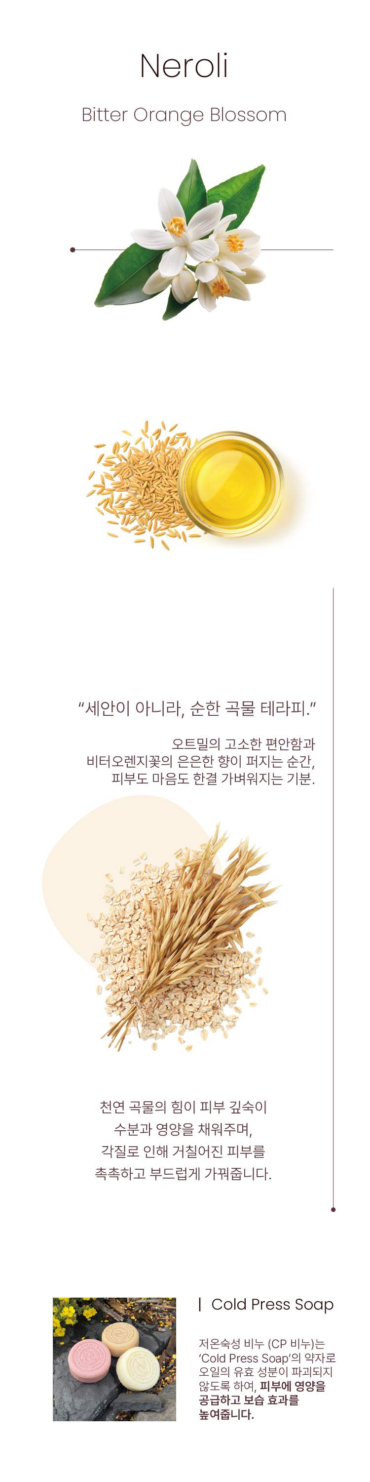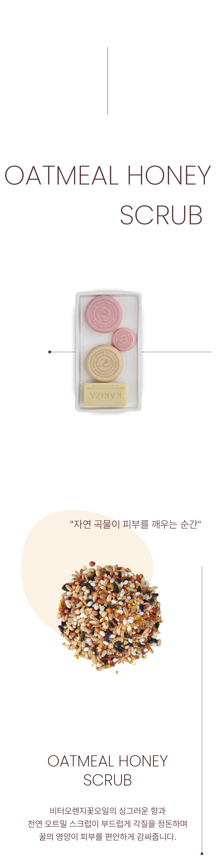 촉촉한 꿀과 미세한 오트밀 입자가 피부를 부드럽게 각질 제거해주는 프리미엄 스크럽입니다. 비터오렌지꽃오일과 카카오씨버터, 곡물 복합추출물이 피부 장벽을 편안하게 감싸주어 사용 후에도 당김 없이 매끈한 결을 선사합니다.